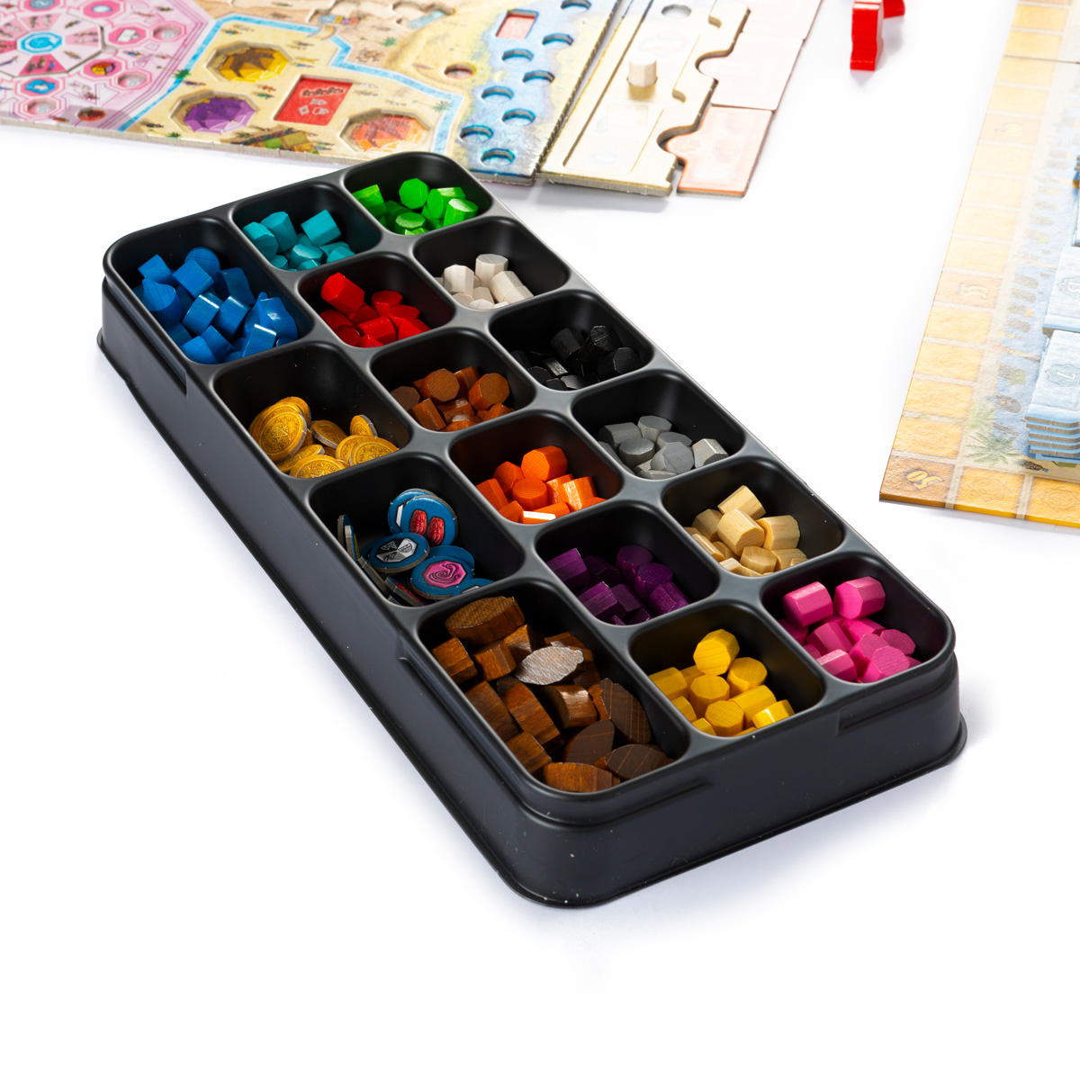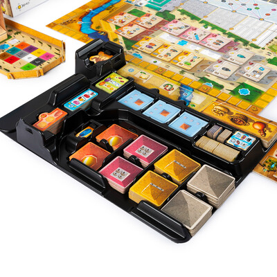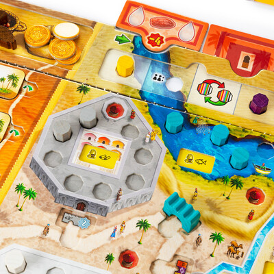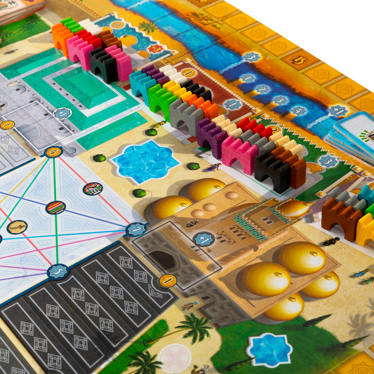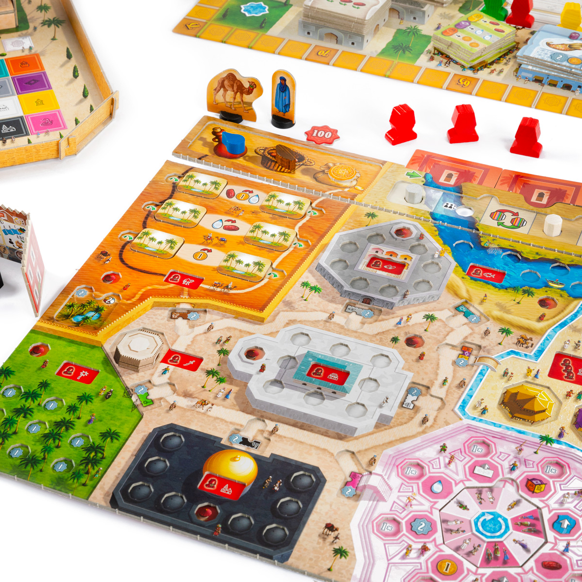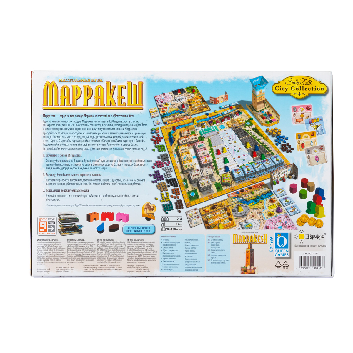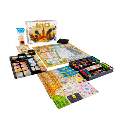 В настольной игре «Марракеш» вы стараетесь получить как можно больше победных очков в разных сферах помощью точного планирования и взвешенных решений. Каждый раунд предлагает новые возможности для адаптации вашей. Самыми интересными элементами этой игры являются специальная башня и особые деревянные фишки, кеши, которые вы будете бросать в башню в начале каждого раунда, и именно они определят, какие действия вы сможете сделать, а также их эффективность. Это создает контролируемый, глубокий игровой процесс, позволяющий планировать на долгосрочную перспективу.