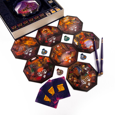 «Инкантибус» — это захватывающая семейная игра, в которой игроки выступают в роли волшебников, исследующих таинственную башню. Цель игры - получить как можно больше очков волшебства, находя ценные артефакты, готовя зелья, ловя монстров и побеждая врагов. Выбирайте уровень сложности, откройте коробку, выполненную в виде магического фолианта, возьмите в руки почти настоящие деревянные волшебные палочки, и вы уже почти готовы к игре.