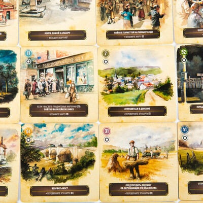 В этих играх нет буклета с правилами, достаточно просто следовать указаниям на карточках. Зато в каждой игре серии много иллюстраций и текста, передающих атмосферу эпохи. А также в коробке вы найдёте дополнительный буклет с исторической справкой о том времени, куда перенесла вас игра. В настоящий момент на русском языке вышло 8 игр: «Винланд», «Лхаса», «Караваны», «Оклахома», «Версаль», «Голливуд», «Три мушкетёра», «Нормандия» .